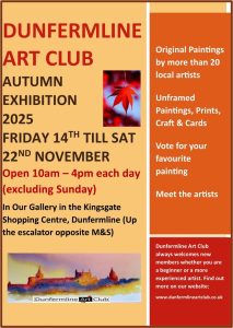 Dunfermline Art Club is listed in the Scottish Charities Register, Charity Number SC041320. You can find details of the clubs annual submission to the Office of the Scottish Charities Regulator via our “Links ” page above.
