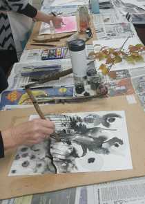 There were plenty of spare inks and paper on hand and Hayley walked amongst the class and took photographs of the pieces being worked on and gave tips and encouragement to each class member.